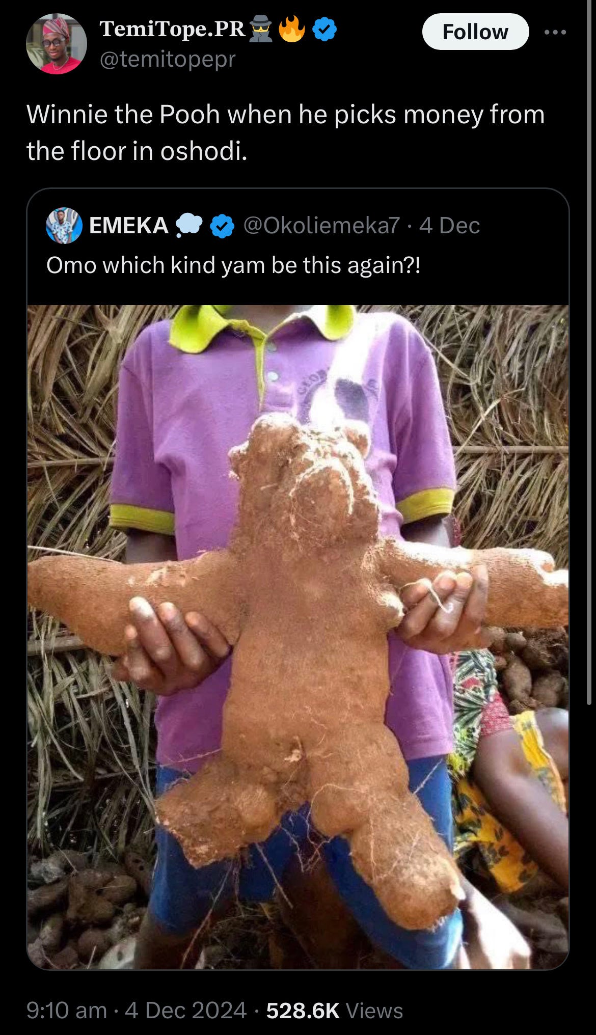 “Pick it o. You cannot turn to yam in Germany. Another person will pick it, so otilor,” one friend said.
